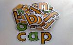 The words in this program are consonant-vowel-consonant (CVC) words such as cap, pen, big, fox, and cup.