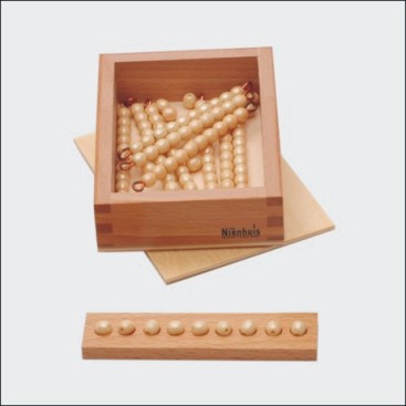 It might not seem interesting to adults, but children adore working with these Golden Beads. For them, there is something magical about seeing and handling the quantities. You can begin with this introductory set (unit beads and ten bars) when your child is three to four years old.
